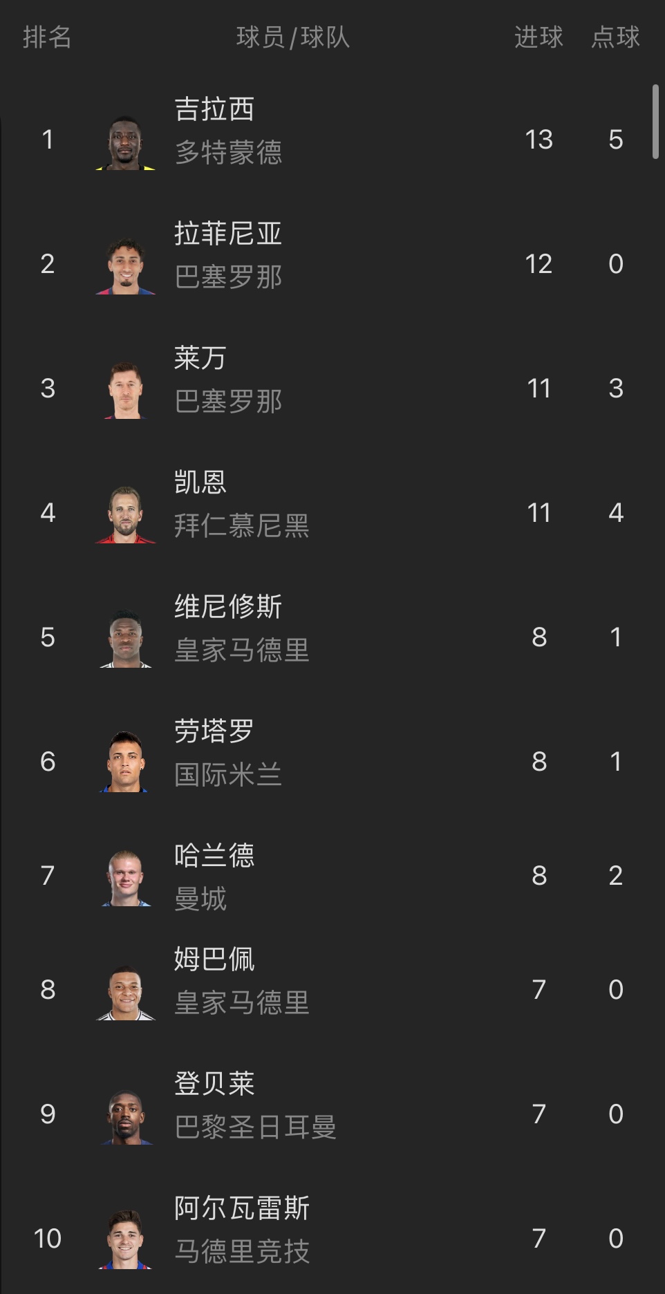 下一站会是哪吉拉西本赛季已打进30球,欧冠射手榜第一德甲第三