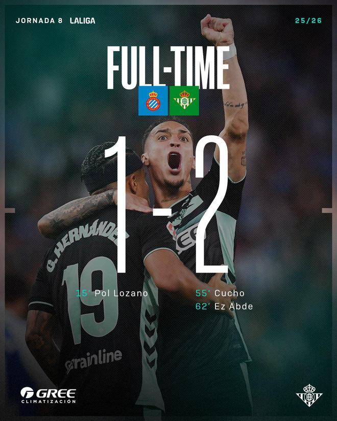 雷速体育10月6日宣 由于普阿多读秒点球罚丢,贝蒂斯最终在客场2-1顽强逆转西班牙人,豪取西甲三连胜。