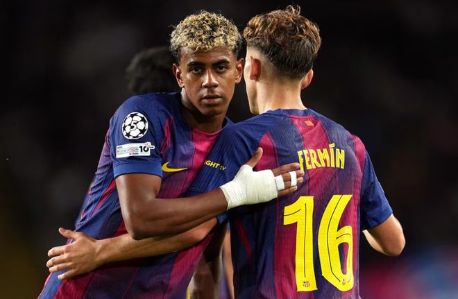 本场比赛戴帽之后,费尔明成为了欧冠历史上,首位为巴萨上演帽子戏法的西班牙球员,另外亚马尔以18岁100天成欧冠历史上打进点球第二年轻的球员,仅次于博扬。