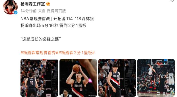 - NBA | 首秀2分1篮板!杨瀚森工作室:这是成长的必经之路