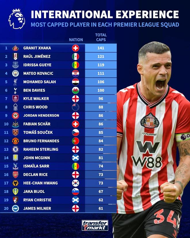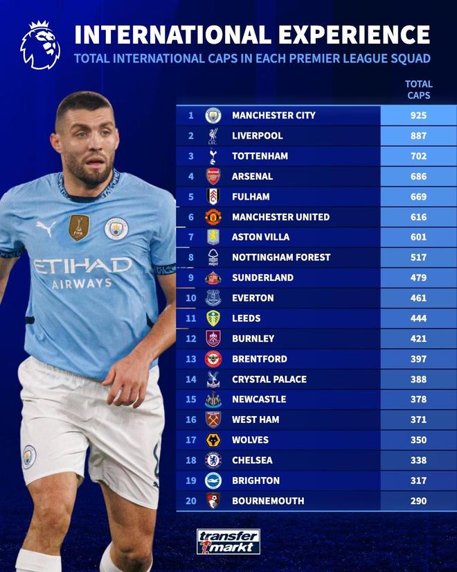- 英超 | 英超俱乐部球员国家队出场数榜:曼城、利物浦前2,切尔西第18