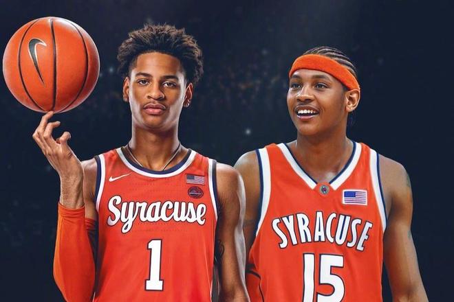 看这个名字大家应该很熟悉吧,没错,他就是卡梅隆·安东尼的大儿子。而他加入的大学,也是追随了父亲的脚步。NCAA的首场比赛,基杨·安东尼替补出战,最终以60%的命中率得到了15分3篮板3助攻的数据,最终,也帮助雪城大学85-47大胜宾厄姆顿大学。这个数据,在NCAA中已经算很可以了,毕竟是首场比赛,更是替补出战。要知道,状元热门皮特森首秀出战22分钟,得到了21分;而另一状元大热AJ·迪班萨,同样拿到了21分。而且和这些身为五星高中生的状元大热不同的是,基杨·安东尼只是被评为四星高中生,在媒体眼中,称不上最顶级的潜力新秀。