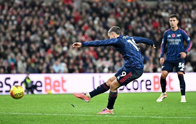 重返赛场之后,阿森纳发起了疯狂的反扑,第54分钟赖斯抢断后,迅速推反击,萨卡右路低射建功,将比分追至1平,第65分钟枪手错失反超良机,苏维门迪的抽射击中横梁被弹出,但9分钟之后,特罗萨德的世界波,还是帮助阿森纳将比分改写为了2-1,掌握住了获胜的主动权。