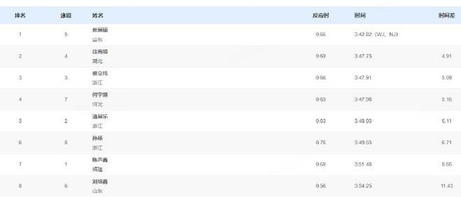 徐海博获得亚军,费立纬拿到铜牌,潘展乐3分48秒93第五,孙杨3分49秒53第六。