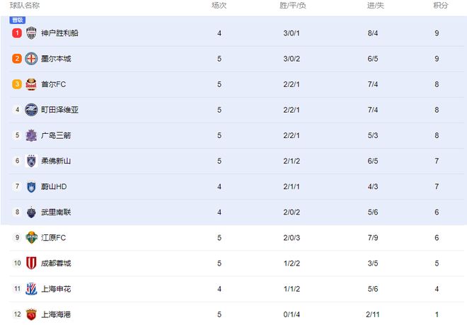 踢海港前,亚冠新军町田泽维亚一胜难求!海港0-2,送对手亚冠首胜,积分力压中超诸强。踢首尔FC前,首尔FC面对中超球队一胜难求,仅积5分。海港1-3,送对手3分助其跃居排行榜第三,助其甩开5分成都蓉城和4分上海申花(下图)。