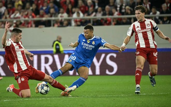 客场挑战希腊豪门奥林匹亚科斯,皇马开场遭到了打击,仅仅8分钟丢球,奇奎尼奥远射破门,好在皇马及时调整状态,姆巴佩短短7分钟完成帽子戏法。第22分钟、第24分钟、第29分钟打进三球,帮助皇马3-1完成反超。第33分钟,维尼修斯一度破门,因姆巴佩越位在先被吹掉,皇马依然带着两球优势进入中场休息。