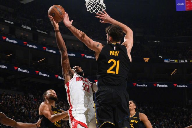 而且比赛期间,内线核心申京的发挥低迷,所以火箭队今天大部分时间打得很挣扎。但最后赢球,就是胜在韧性十足,还有奇兵站出来。而且,今天火箭队成功锁死了库里。比赛一开始,火箭队的外线手感就相当冰凉。而勇士队靠着追梦和理查德的发挥,迅速确立领先优势。好在火箭队并未慌乱,靠着强大的前场篮板能力回应。特别是卡佩拉,连续的进攻篮板,在首节让火箭队的出手次数比勇士队多了10次。也正是靠着这样的二次进攻能力,首节比赛结束的时候,火箭队将分差保持在3分没有被勇士队打花。后面轮换阶段,勇士队试图拉开分差,但火箭队的谢泼德及时站了出来。