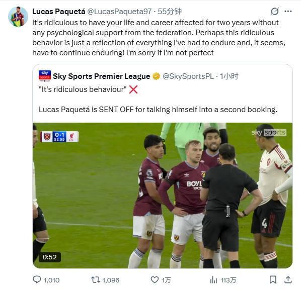 - 英超 | 帕奎塔谈染红:生活事业受影响长达两年但未得支持,实在荒谬