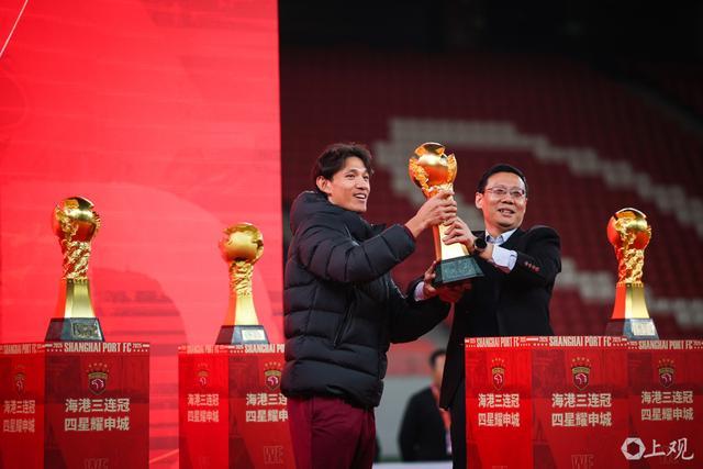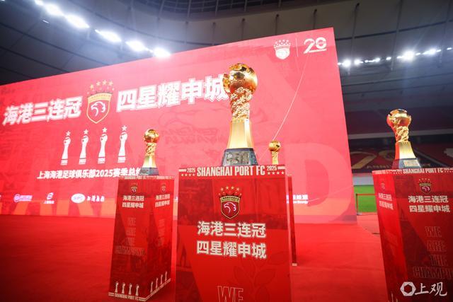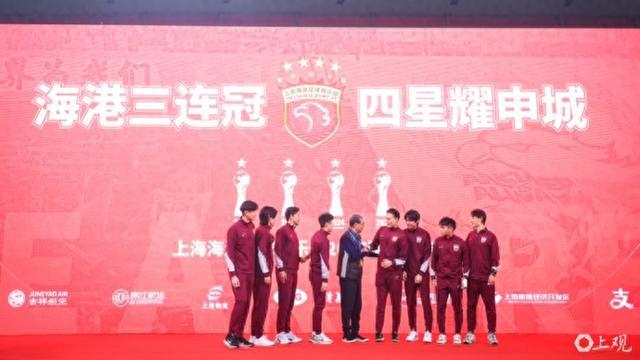上海海港队徽添第四颗星,实现中超三连冠