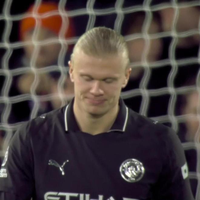 比赛第6分钟,哈兰德带球突入禁区射门击中立柱弹出。这位曼城前锋仍在等待英超生涯第100球。