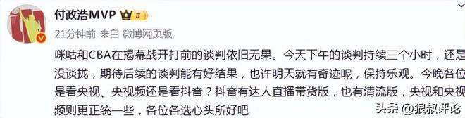 - CBA | 媒体人:CBA和咪咕在新赛季揭幕战前谈判三小时结果依旧没有谈拢