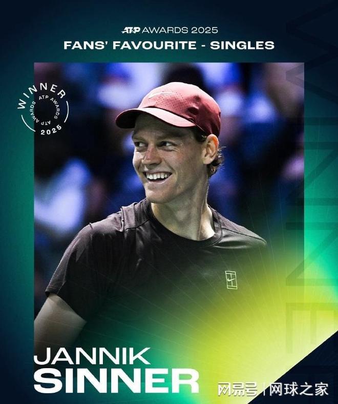 我们再来关注ATP2025年度奖项。经过一周的评选,北京时间昨晚,所有奖项的评选结果全部揭晓。意大利一哥辛纳获得ATP年度最受欢迎单打球员奖,这是辛纳连续第三年把这个奖项收入囊中。