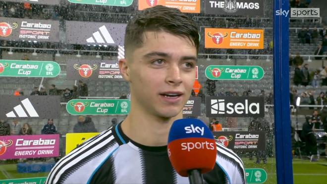 英联杯1/4决赛,卫冕冠军纽卡斯尔联2-1绝杀富勒姆。补时阶段打入绝杀进球的小将刘易斯-米利接受了天空体育的采访。