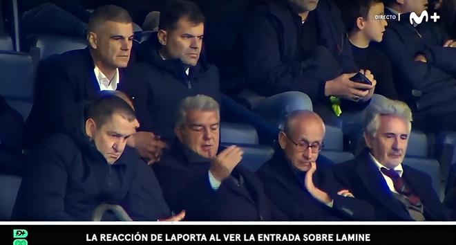 与此同时,镜头捕捉到了陶瓷球场包厢内的一幕,巴萨主席拉波尔塔正在与其他高层坐在一起,当他在现场目睹这次犯规时,神情瞬间流露出愤怒。