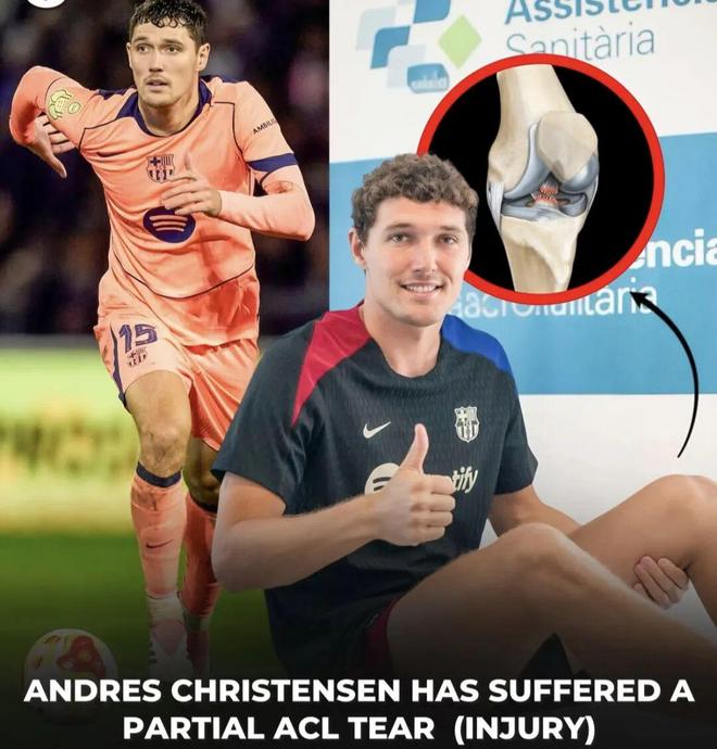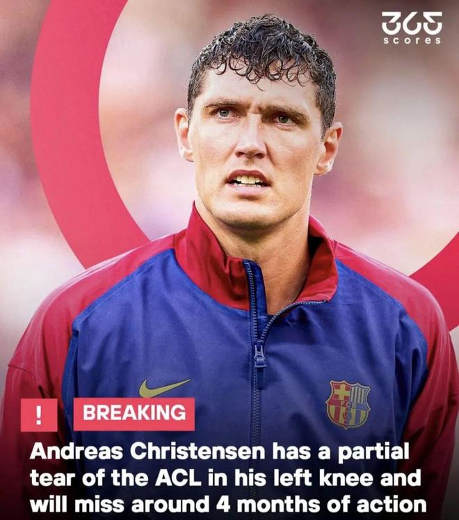 西甲豪门巴萨官方宣布,克里斯滕森训练中左膝前十字韧带部分撕裂,这是在上周六训练中的一次错误动作意外造成的。