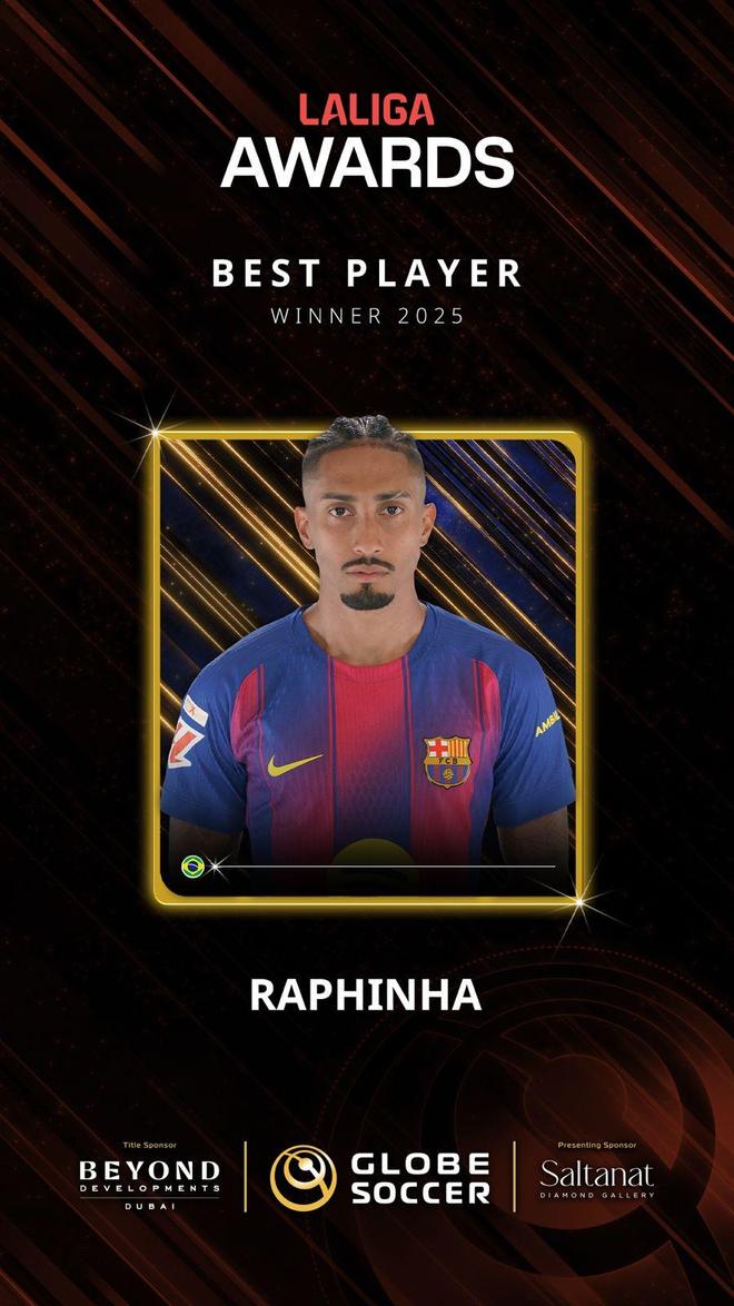 - 西甲 | 官方:拉菲尼亚获得环球足球奖2025年度西甲最佳球员奖