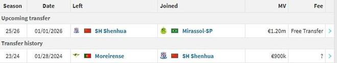 - 欧冠 | 德转:申花外援路易斯将在合同到期后自由身加盟巴甲米拉索尔