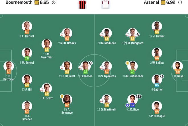 伯恩茅斯首发:1-佩特洛维奇、3-特吕费尔、5-塞内西、20-A·希门尼斯、23-詹姆斯·希尔、8-斯科特(74' 22-克鲁皮)、19-克鲁伊维特(74' 4-库克)、7-布鲁克斯(67' 21-阿明·阿德利)、9-埃瓦尼尔森(74' 26-于纳尔)、16-塔韦尼耶、24-塞梅尼奥