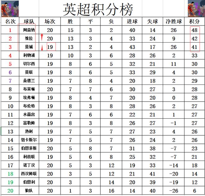 英超最新积分战报阿森纳逆转多曼城7分黑马升至第2副班长首胜